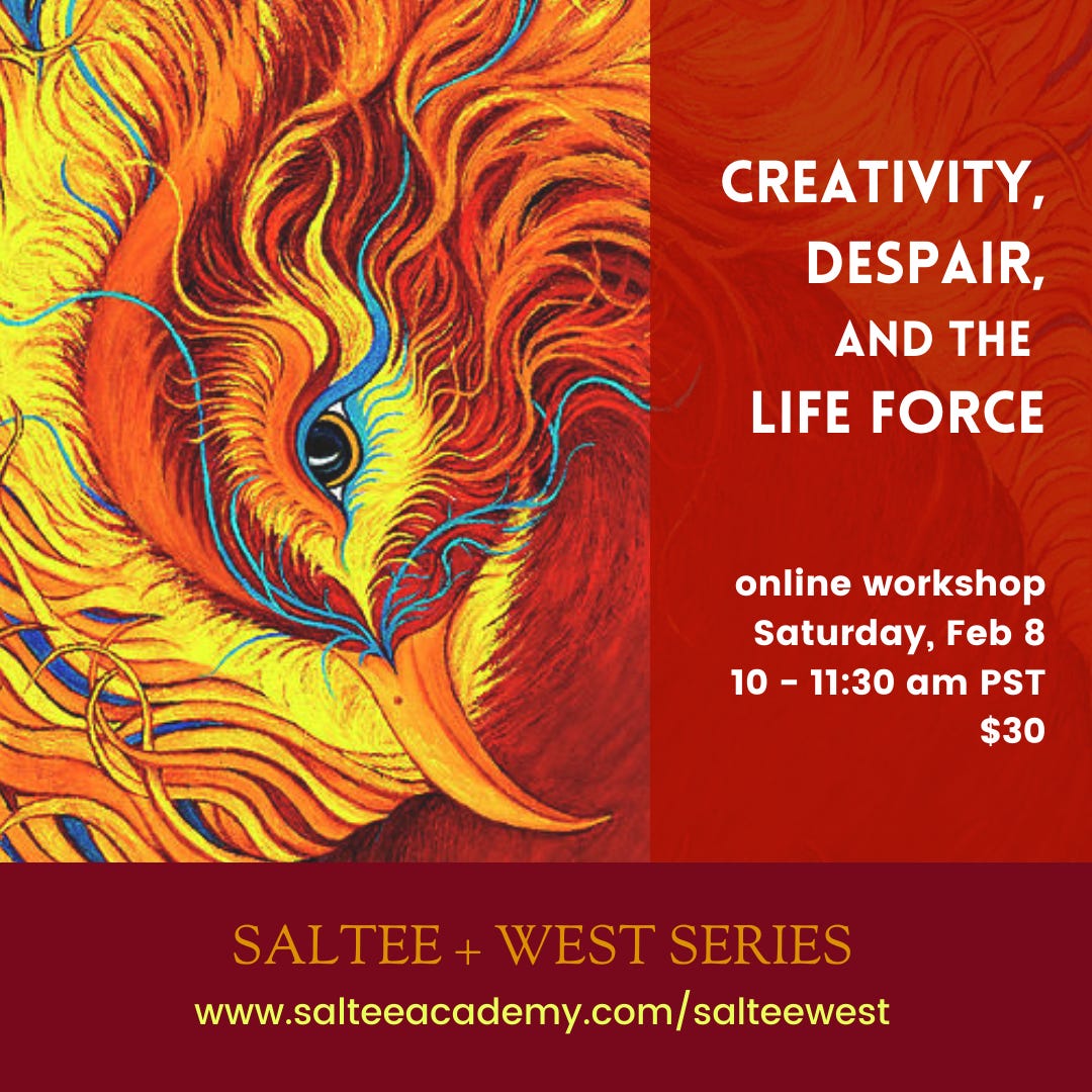 Saturday, February 8th: Creativity, Despair, and the Life Force. Melissa West and I will be exploring the difference between despair as a messenger and despair as a swamp and sharing tools and strategies for transmuting despair through creative practice.